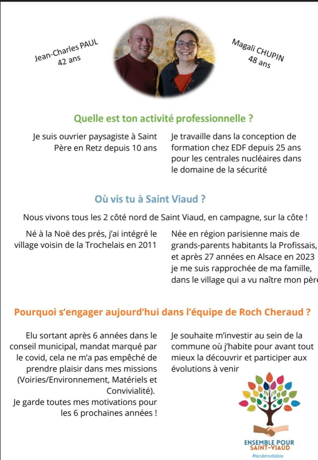 🗓 JOUR n°12 – POUR LA LISTE Ensemble pour Saint-Viaud 🟠 Charlotte et 🟢 Patrick…